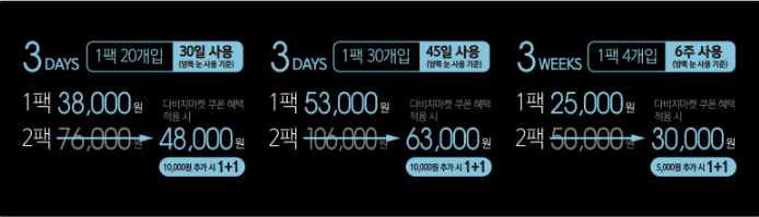 3주용 렌즈는 한팩 40,000원에 1+1 제품으로