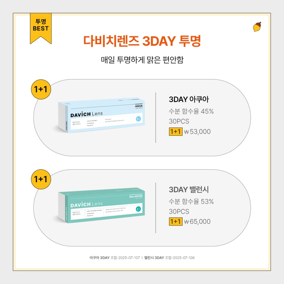 다비치렌즈 3DAY 1+1 이벤트를